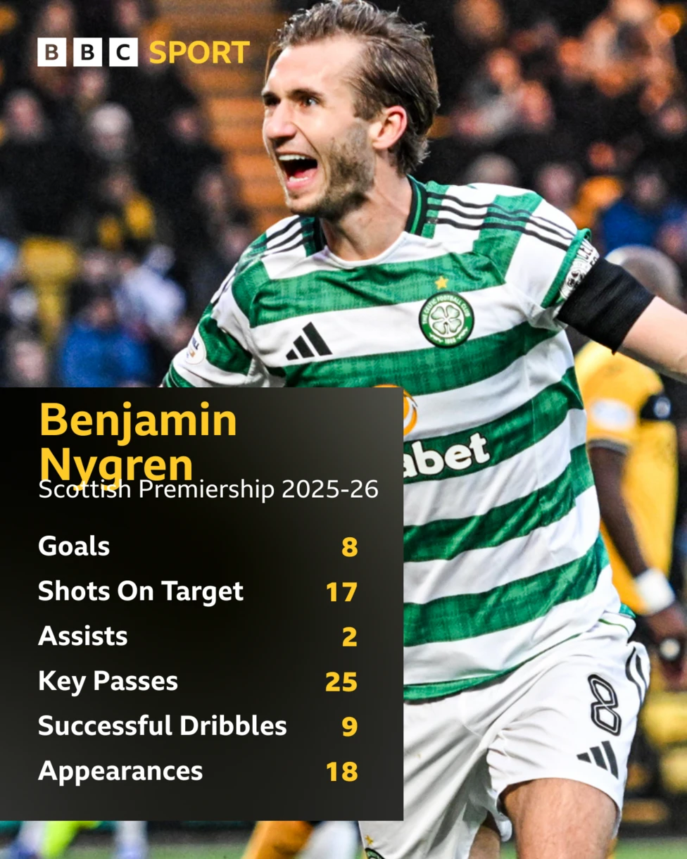Nygren, de 24 años, es el máximo goleador del Celtic esta temporada con 10 goles en 29 apariciones.