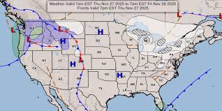 El noroeste del Pacífico se verá afectado por un sistema de tormentas cercano a la costa que provocará lluvias intensas localizadas en las cordilleras costeras del oeste de Washington y Oregón. Esto se traducirá en fuertes nevadas en las zonas altas de las Cascadas de Washington, y esta humedad y la amenaza de fuertes nevadas se extenderán hacia el este, hacia el norte de las Montañas Rocosas y partes de las Altas Llanuras del norte, para el viernes 28 de noviembre.