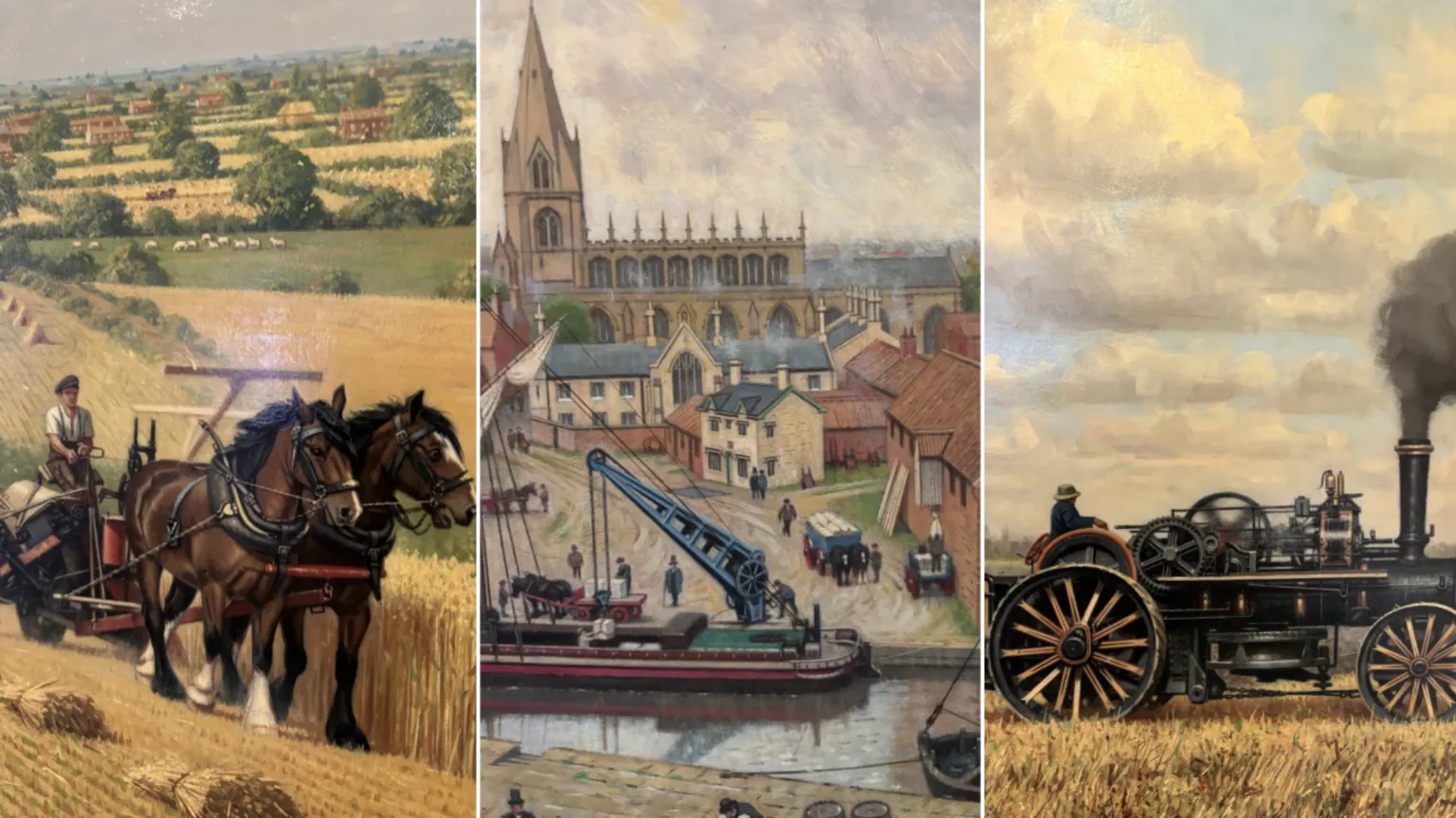Las pinturas, de Robin Wheeldon, quien creció en Heighington, cerca de Lincoln, capturan la herencia agrícola e industrial del condado y están en exhibición en el Museo de la Vida de Lincolnshire.