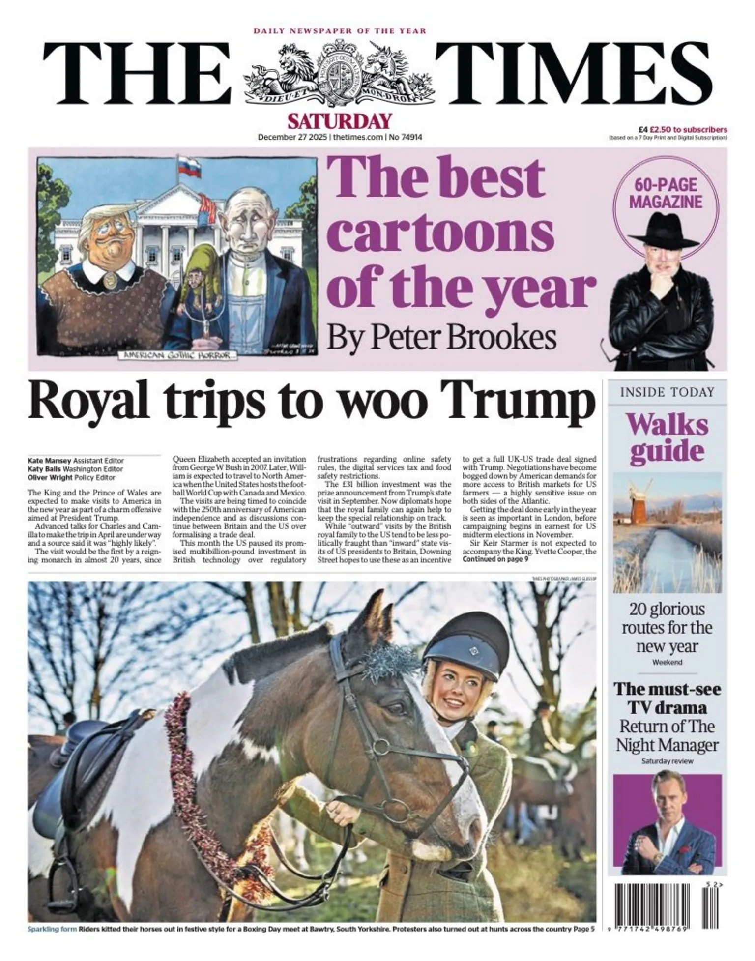 El Times afirma que es muy probable que tanto el rey Carlos III como el príncipe de Gales visiten Estados Unidos el próximo año como parte de una estrategia de seducción para cortejar a Trump. El periódico señala que las visitas se producen mientras continúan las negociaciones entre el Reino Unido y Estados Unidos para formalizar un acuerdo comercial.